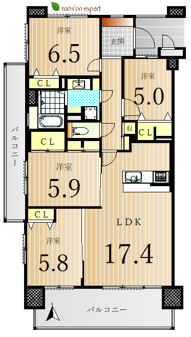 お部屋は8階角部屋、4LDKです。