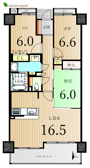 収納も充実していますしユニットサイズも1416と大きめです。