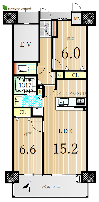 専有面積が63㎡ありますので各居室ゆったりしていますし